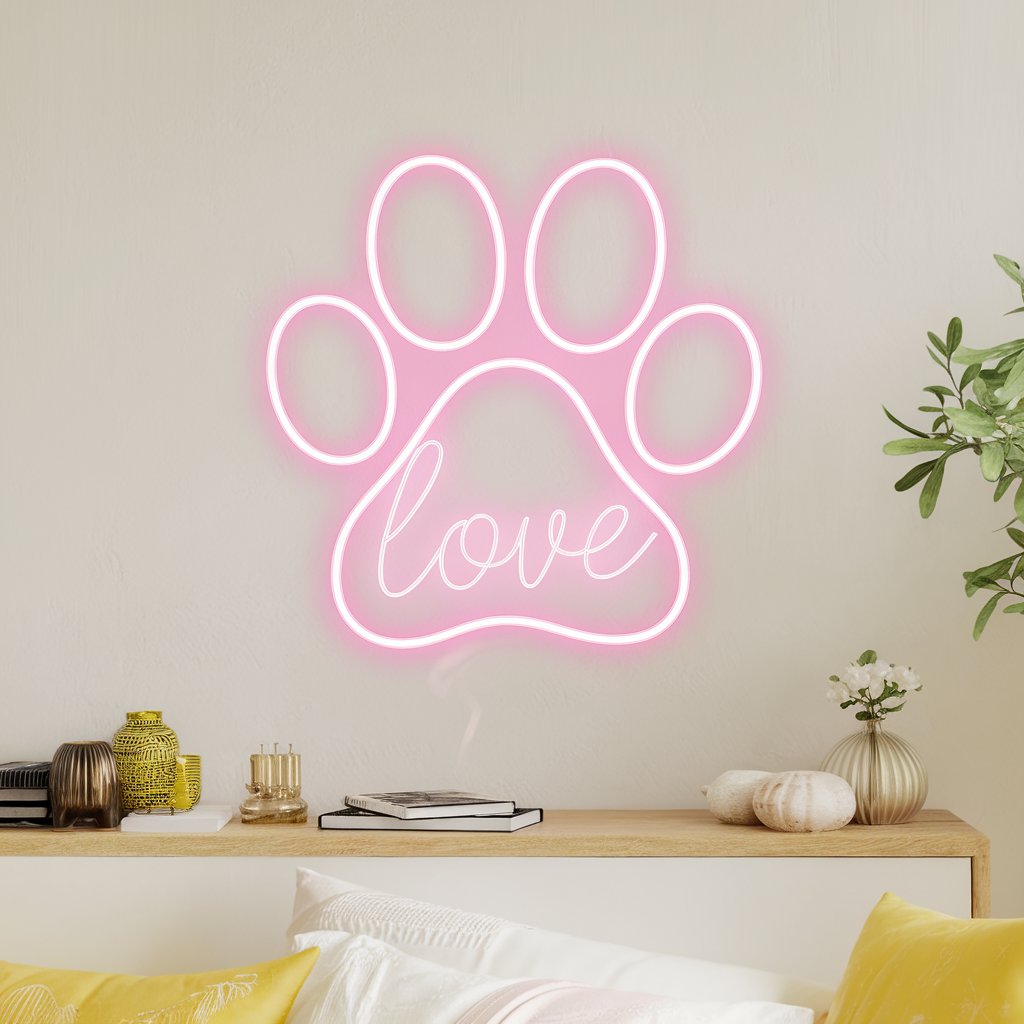 Paw Print Love Neon Sign – Cute LED Wall Light for Pet Lovers & Animal Owners